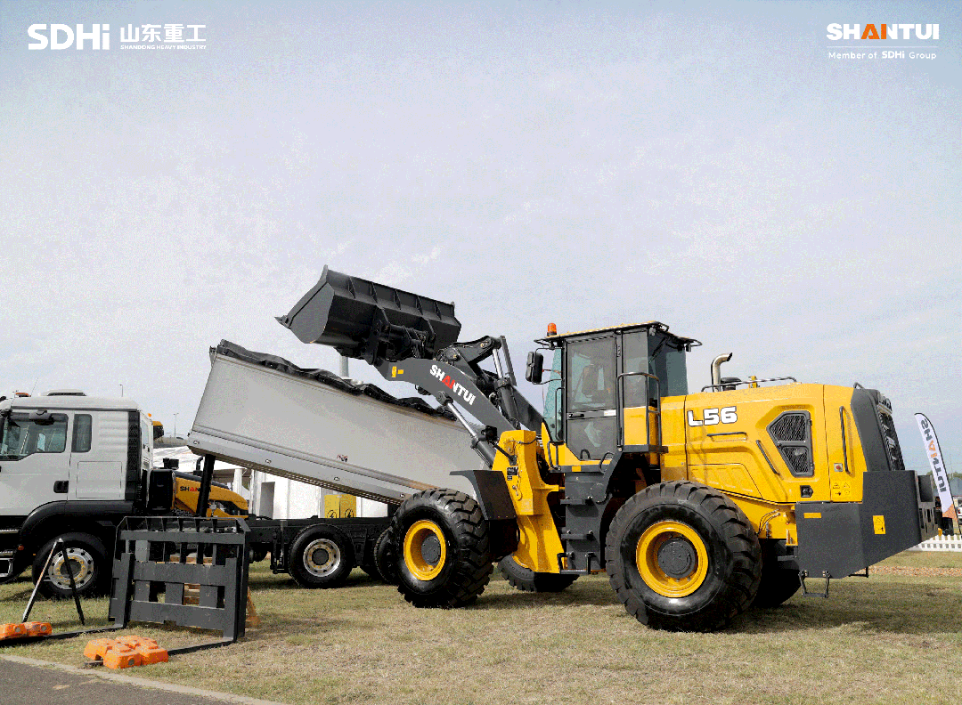 L56-B6装载机与中国重汽SITRAKG7S8x4铝合金自卸车共同展出,匹配成熟可靠的动力总成系统,在重载工况下保持稳定牵引力输出与优异燃油经济性。